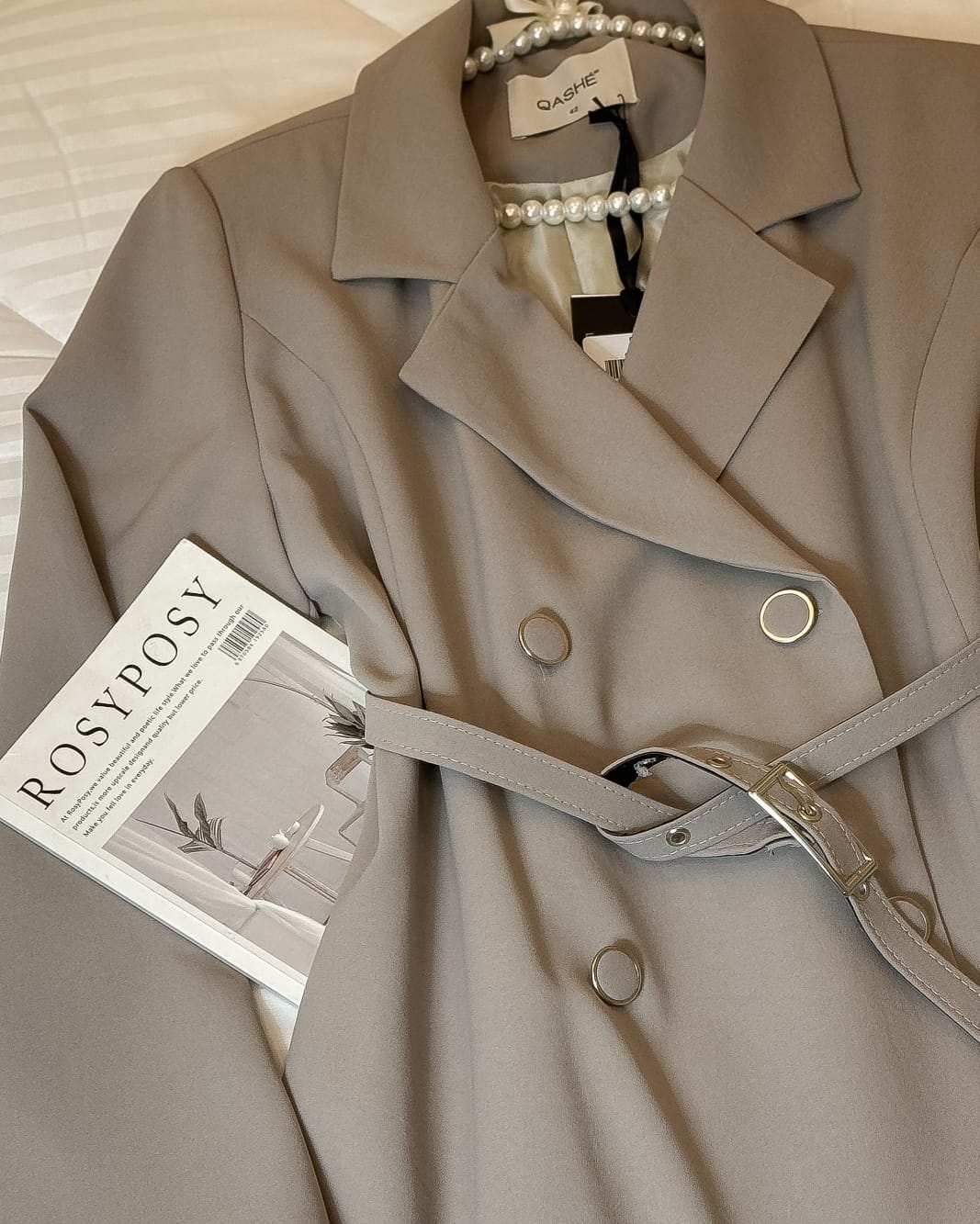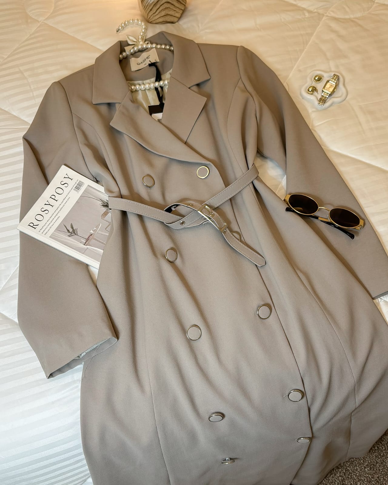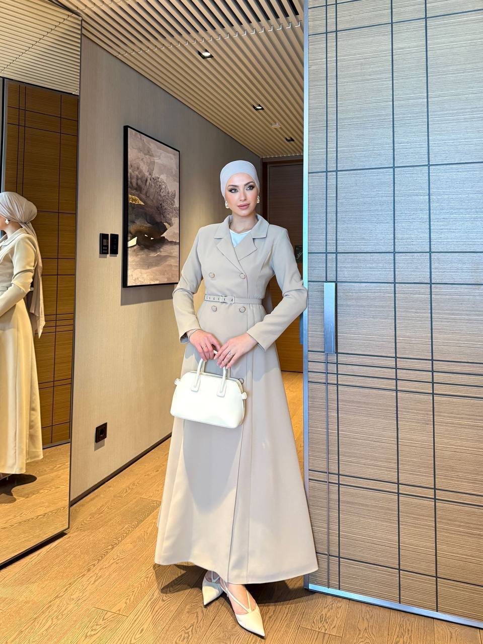 فستان أنيق عملي بلمسة عصرية، مصنوعة من قماش مريح مع حزام خصر لإطلالة أنثوية محتشمة.