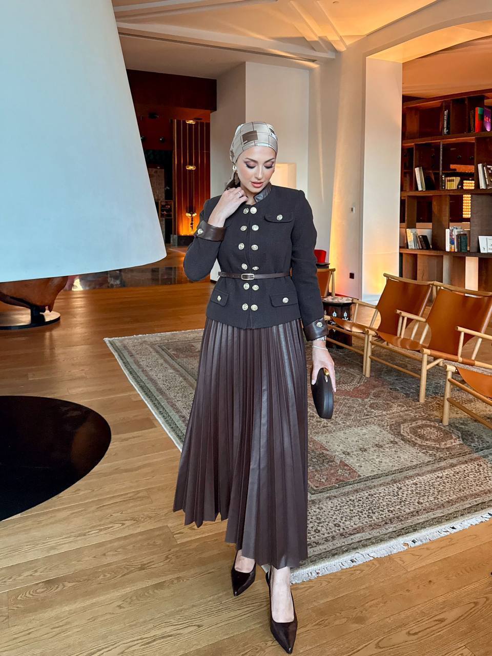 الجكيت مبطن بالكامل ، التنورة مصوفة من الداخل دافئة.