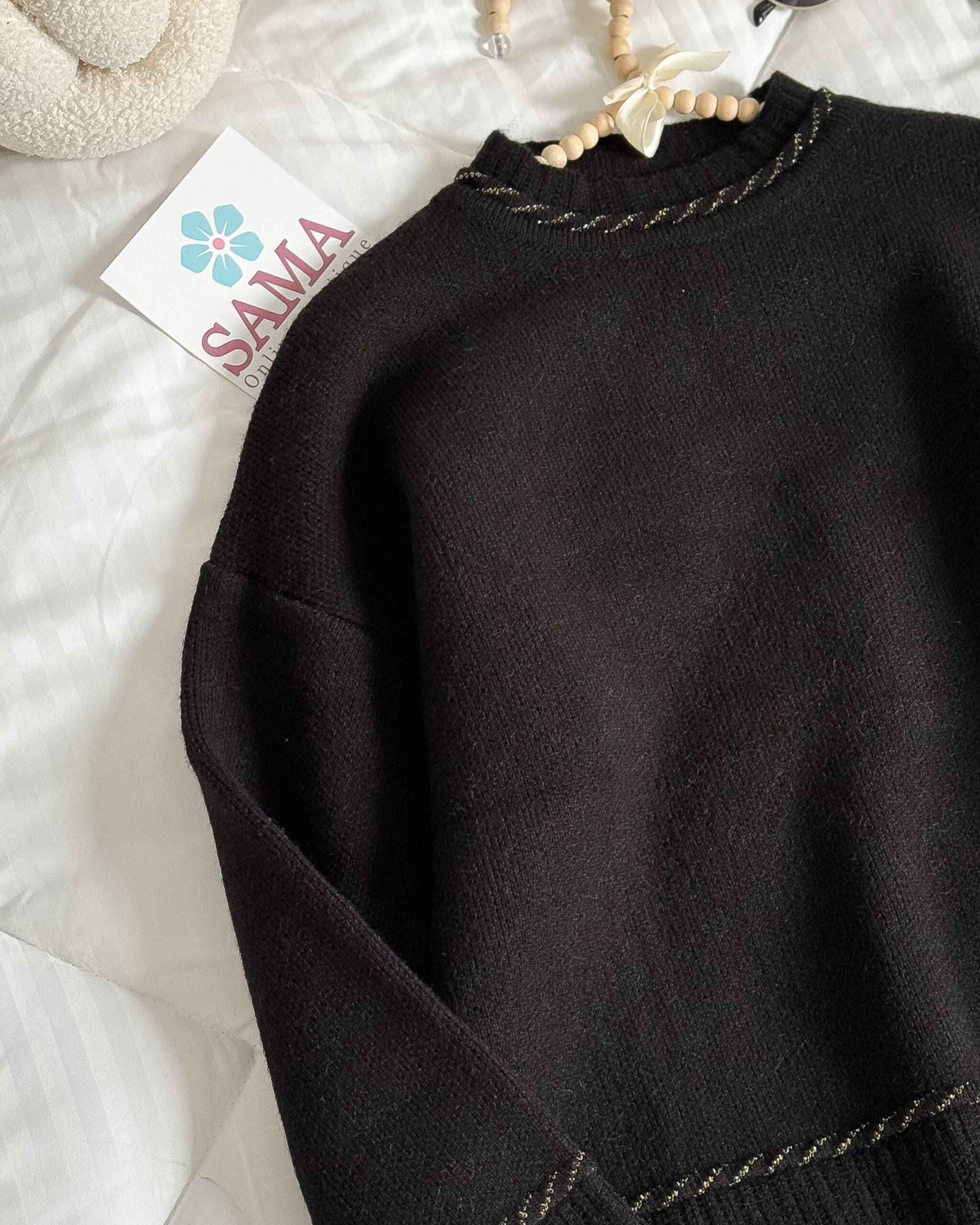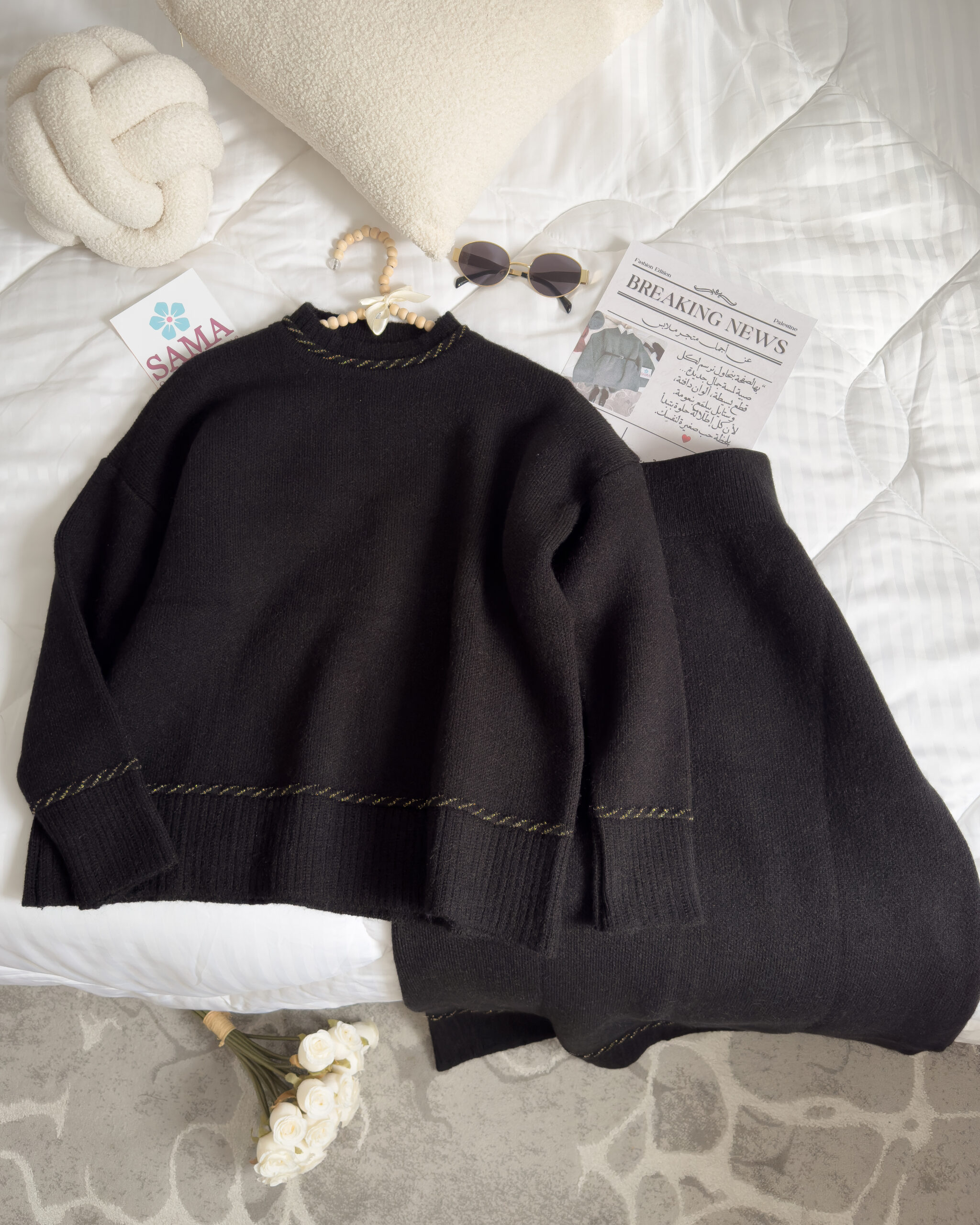 طقم صوف تنورة أسود أنيق وناعم، تصميم دافئ بلمسة راقية يناسب الإطلالات اليومية والشتوية. خيار مثالي للأناقة المريحة بكل بساطة 🤎✨