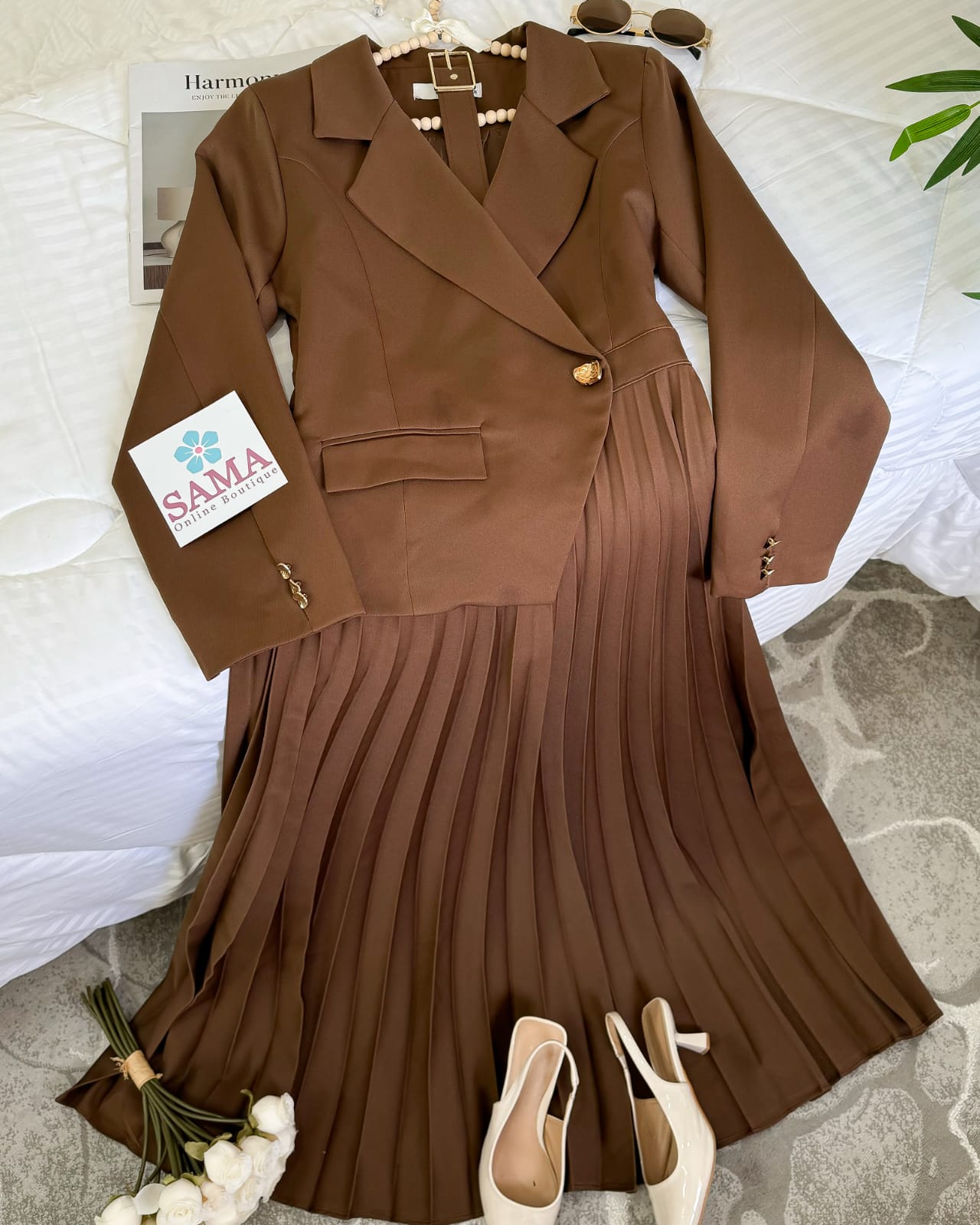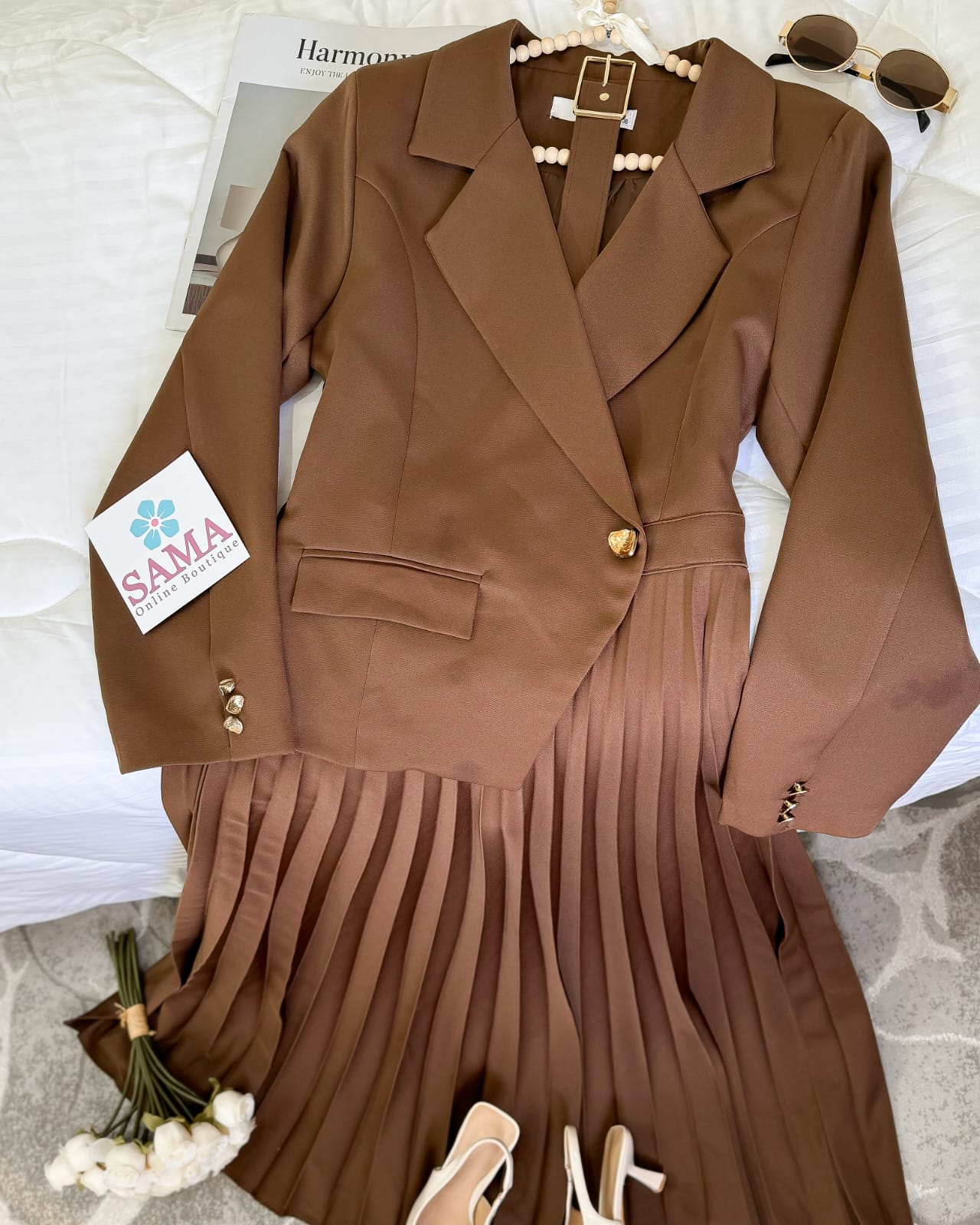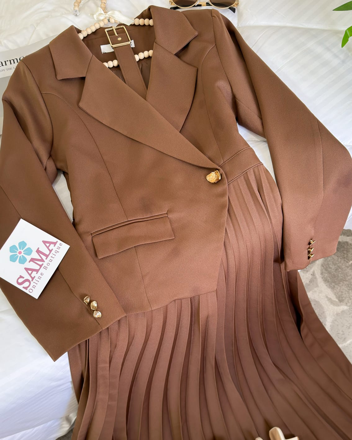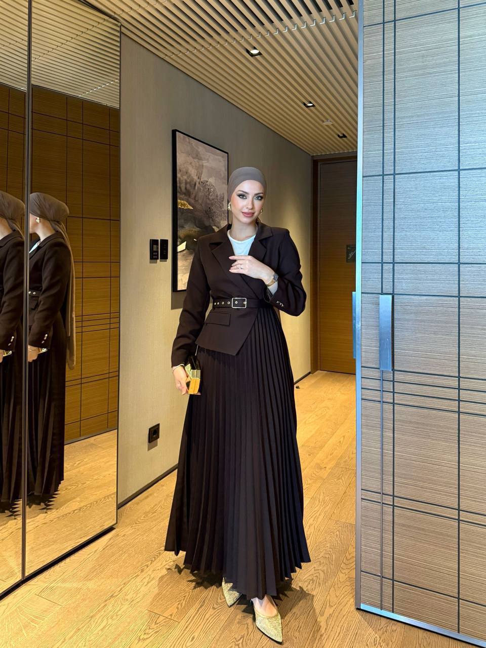 فستان أنيق عملي بلمسة عصرية، مصنوعة من قماش مريح مع حزام خصر لإطلالة أنثوية محتشمة.