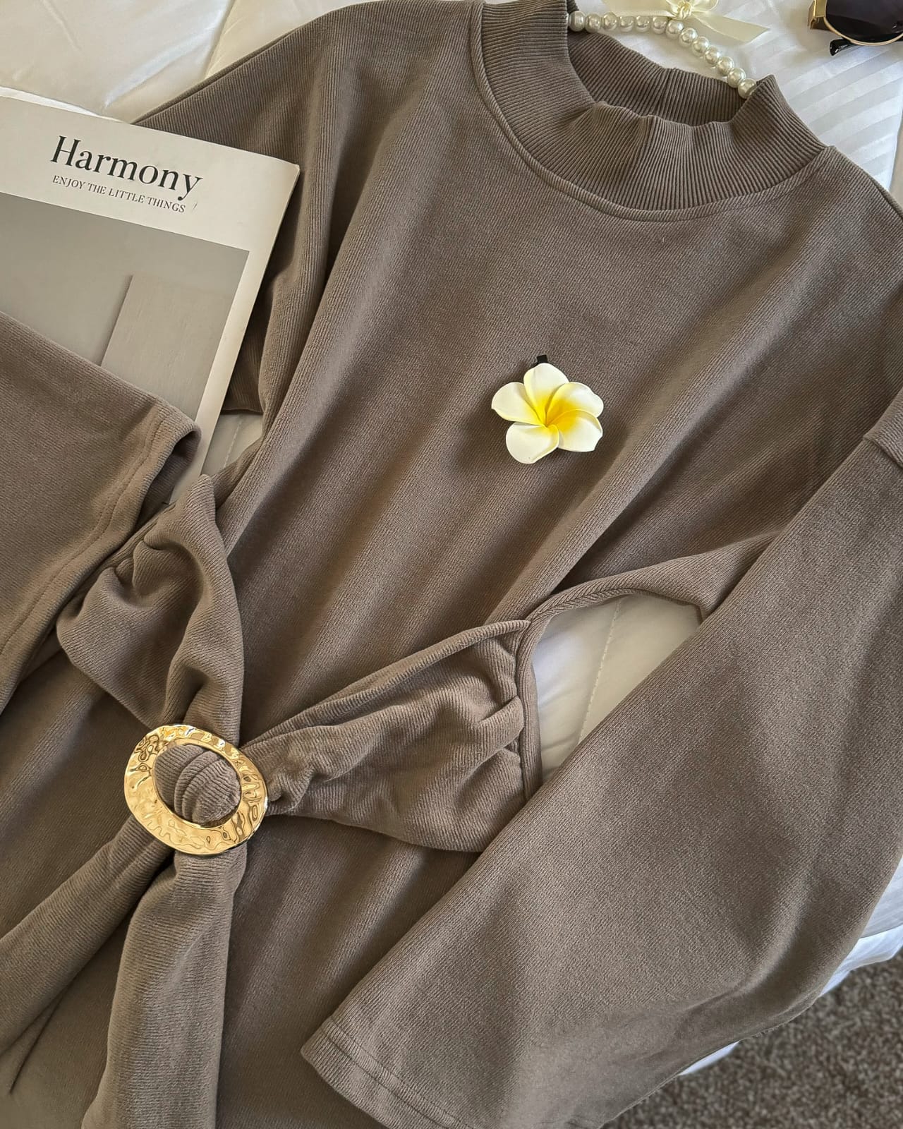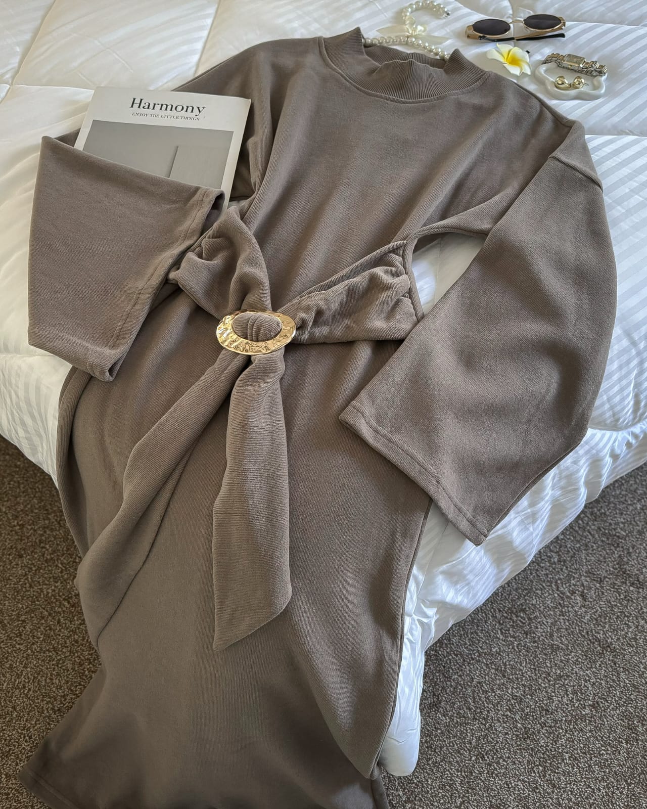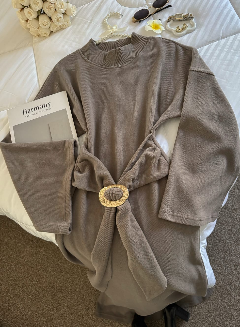 فستان أنيق عملي بلمسة عصرية، مصنوعة من قماش مريح مع حزام خصر لإطلالة أنثوية محتشمة.